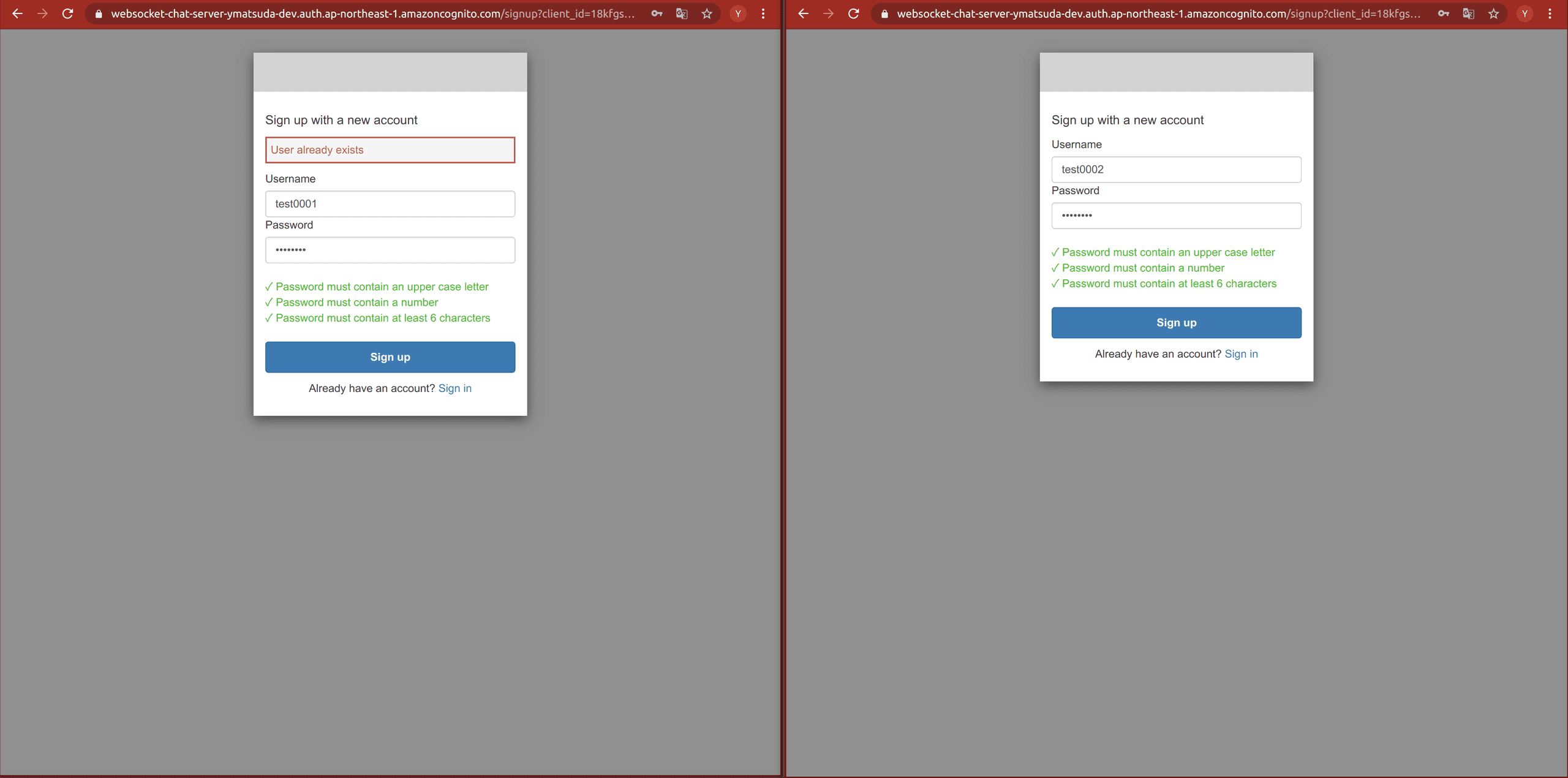 - Sign Upでユーザ登録&ログイン